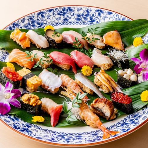 豊洲市場から直送の新鮮なネタで握る、極上の江戸前寿司にもご注目!本まぐろ・うにをはじめとした30~50種類以上のネタから選ぶお好きな握りを、存分にお楽しみいただけます。メニューはブリ・赤貝・炙りサーモンなどの単品から、鮮度を活かした刺身まで多数◎当日の気分やお好みに合う一貫がきっと見つかるはずです。