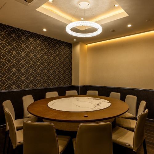 ラグジュアリーな内装が印象的な円卓個室は10名様まで着席できます。個室はしっとりと落ち着きのある雰囲気で、記念日のお食事や結納・顔合わせの席としてもご利用いただいております。壁・扉付きの完全個室で、お身内だけのプライベートなひとときをお過ごしください。